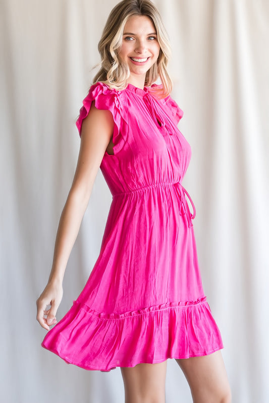 Sold outThe Hot Pink Ruffled Sleeve Dress