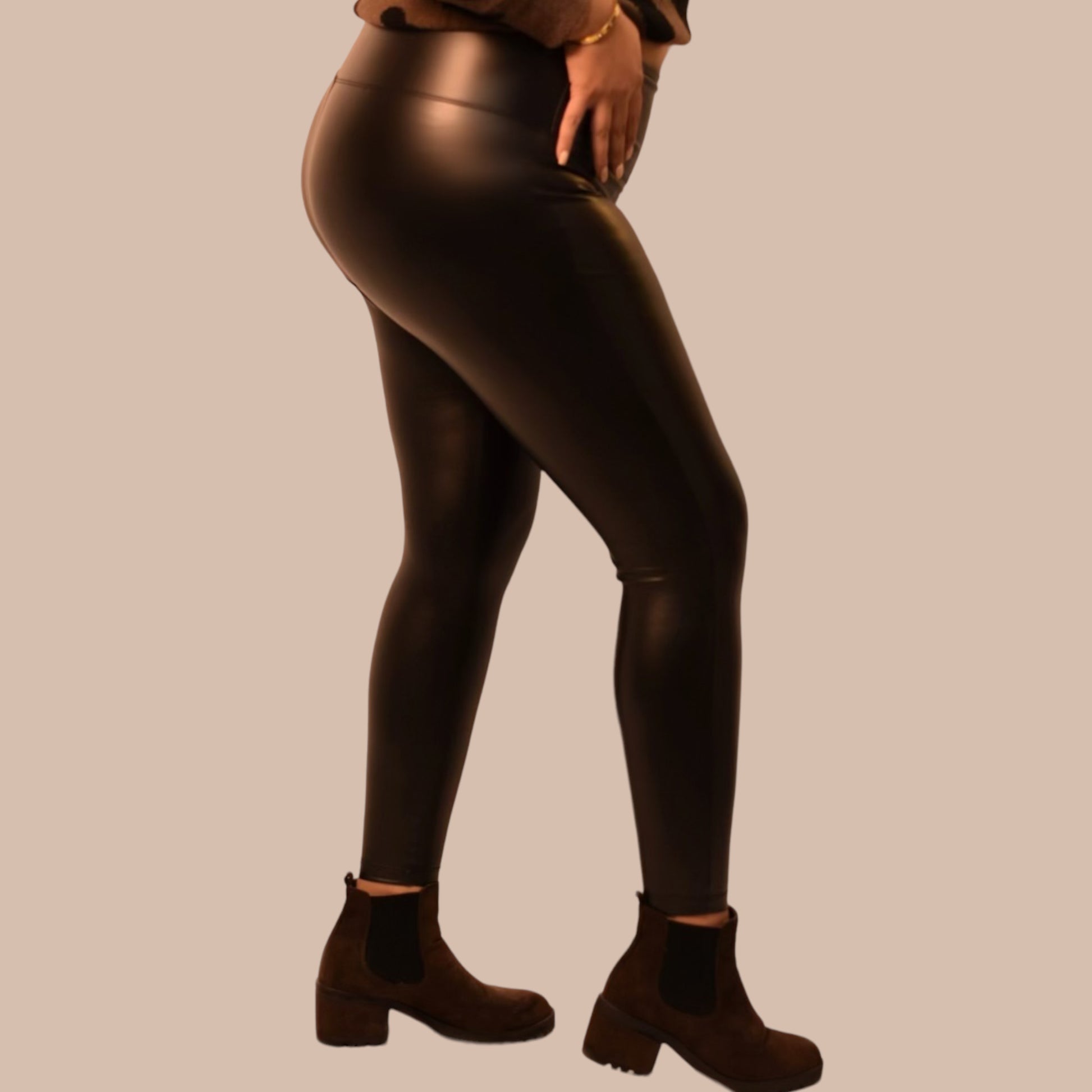 These Black High Rise Faux Leather Leggings provide a sleek, modern look with all day comfort. The faux leather fabric is highly stretchable, yet supportive, and the high rise waistband offers abdominal control. Perfect for any everyday wardrobe!