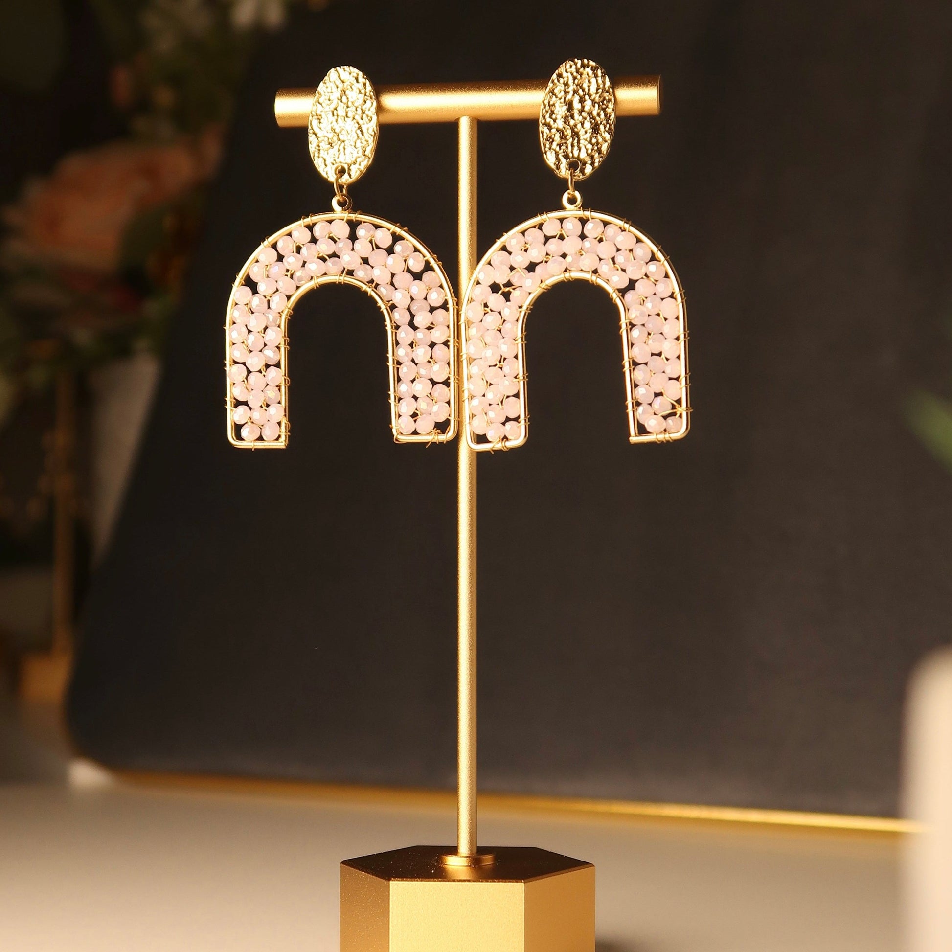 Elevate your outfit with these stunning Halo Again Earrings in Pink. The delicate beaded design adds a touch of elegance, and the halo shape symbolizes infinite beauty and grace. Perfect for any occasion, these earrings are a must-have for your jewelry collection!