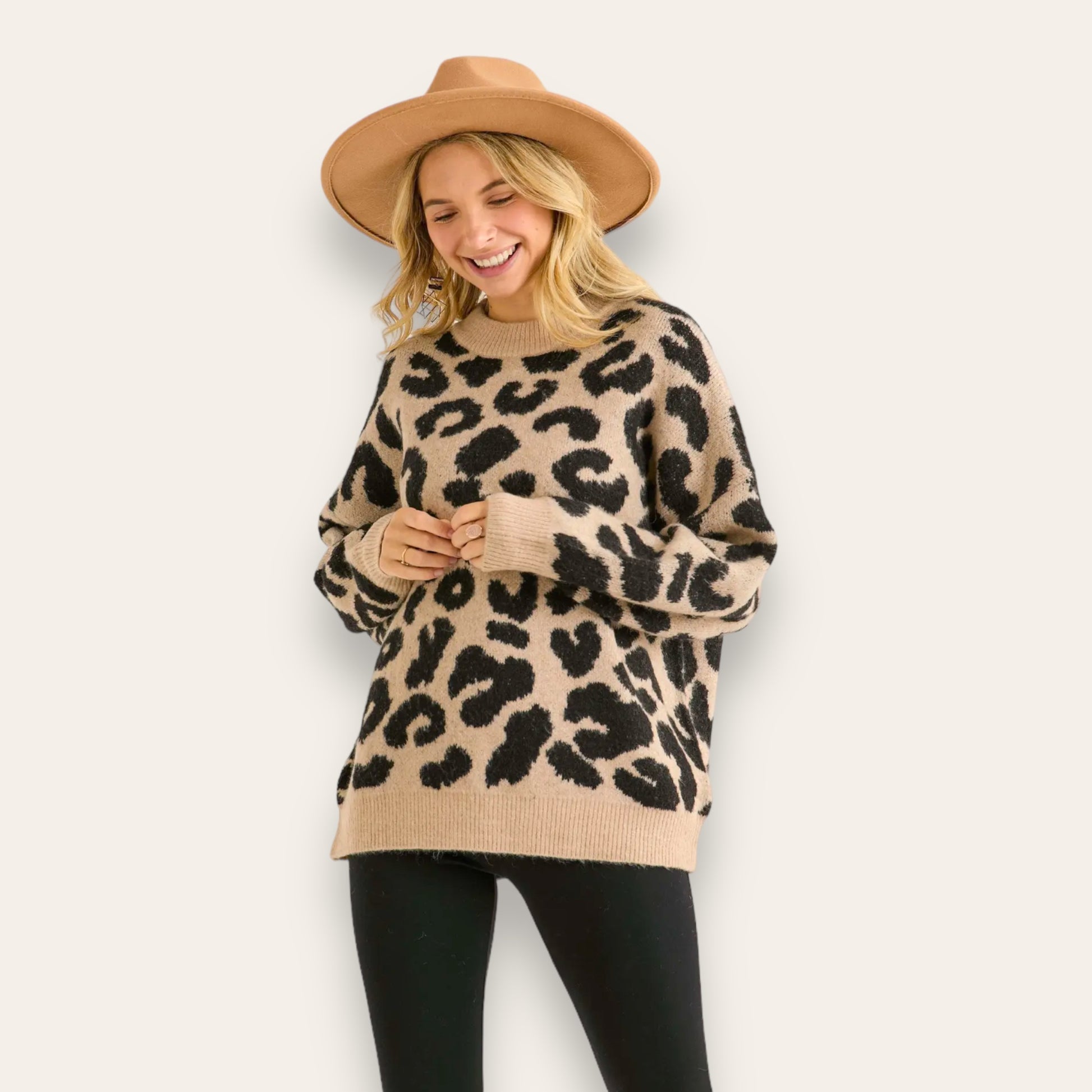 A stylish statement piece, the Leopard Sweater is perfect for when you want to make a bold statement! The leopard pattern creates a look that's both elegant and eye-catching. Whether you're looking for a cozy winter ensemble or a daring, trend-setting look, this beautiful soft sweater is the perfect choice. Make a statement today!