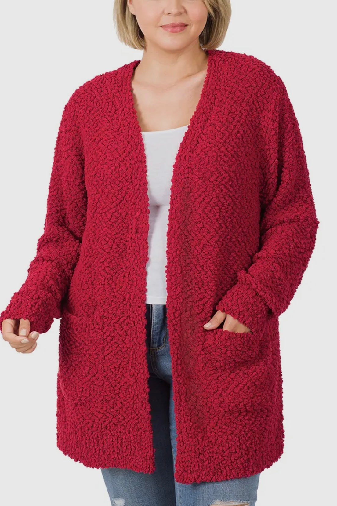 The Popcorn Knit Sweater Cardigan With Pockets Curvy