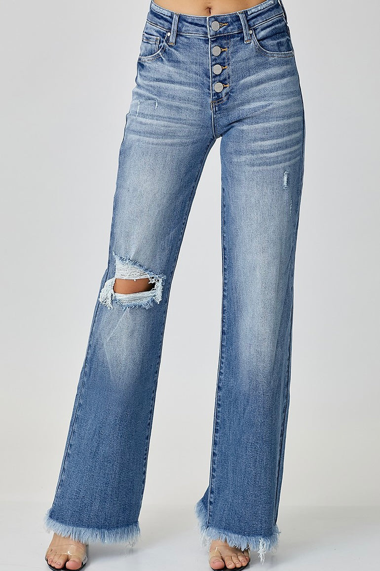 The Mid Rise Button Down Wide Leg Risen Jeans Medium Wash