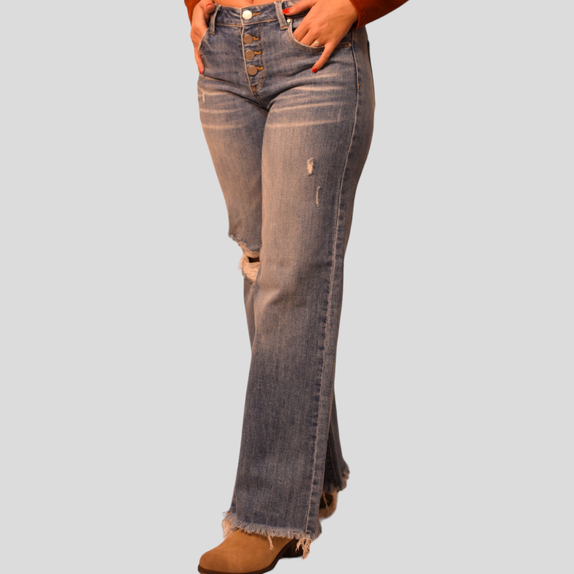 Upgrade your denim game with these Mid Rise Button Down Wide Leg Jeans. Made with high-quality material, these jeans provide a comfortable and flattering fit. The mid-rise waist and wide leg design make them a versatile addition to any wardrobe. Perfect for any occasion, these jeans are sure to elevate your style. These popular Risen Jeans are selling out quickly make sure to grab you a pair!