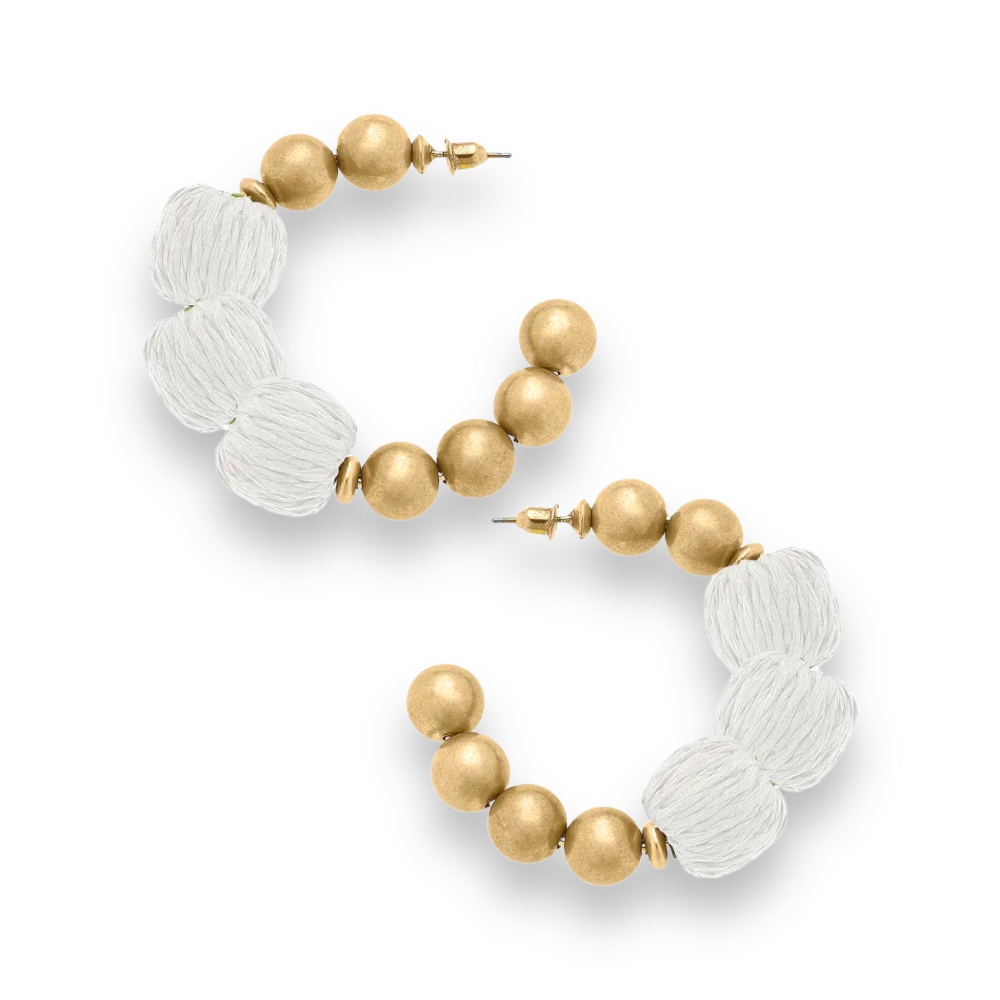 The Barbados Raffia And Ball Bead Hoop Earrings