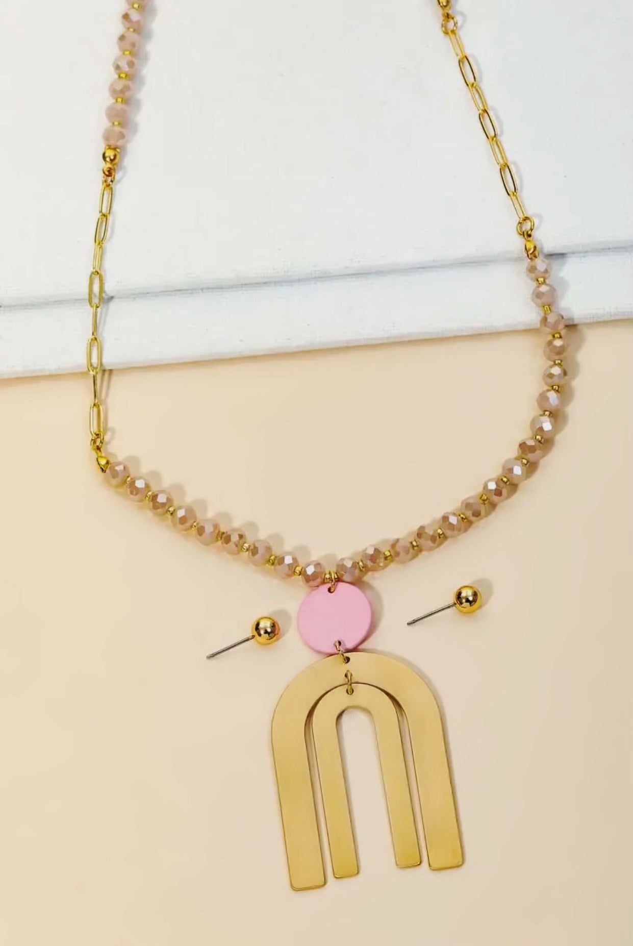Elevate your style with the elegant and unique Beaded Arch Pendant Long Necklace. Featuring a delicate arch pendant adorned with beautiful beads, this necklace adds a touch of sophistication to any outfit. Perfect for adding a subtle statement to your look, it's a must-have for any jewelry collection.