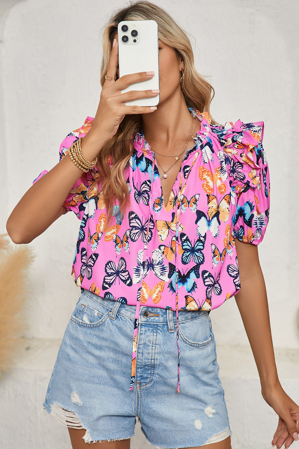 The Butterfly Print Ruffled Top