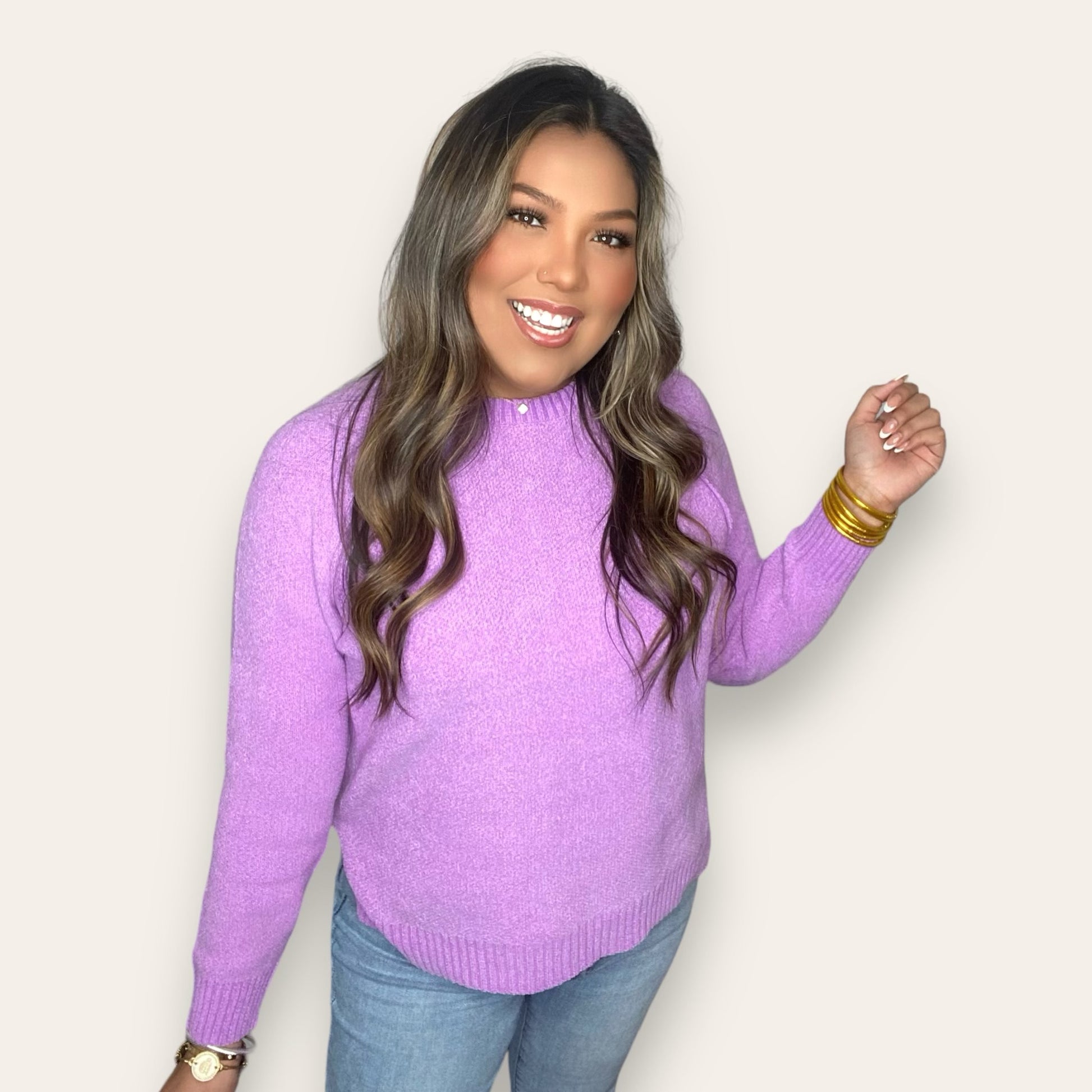 Introducing the Darcy Sweater in a gorgeous lavender color! Made with high-quality materials, this sweater is sure to keep you warm and stylish. With a comfortable fit and versatile design, it's the perfect addition to your wardrobe. Elevate your look and stay cozy with the Darcy Sweater!