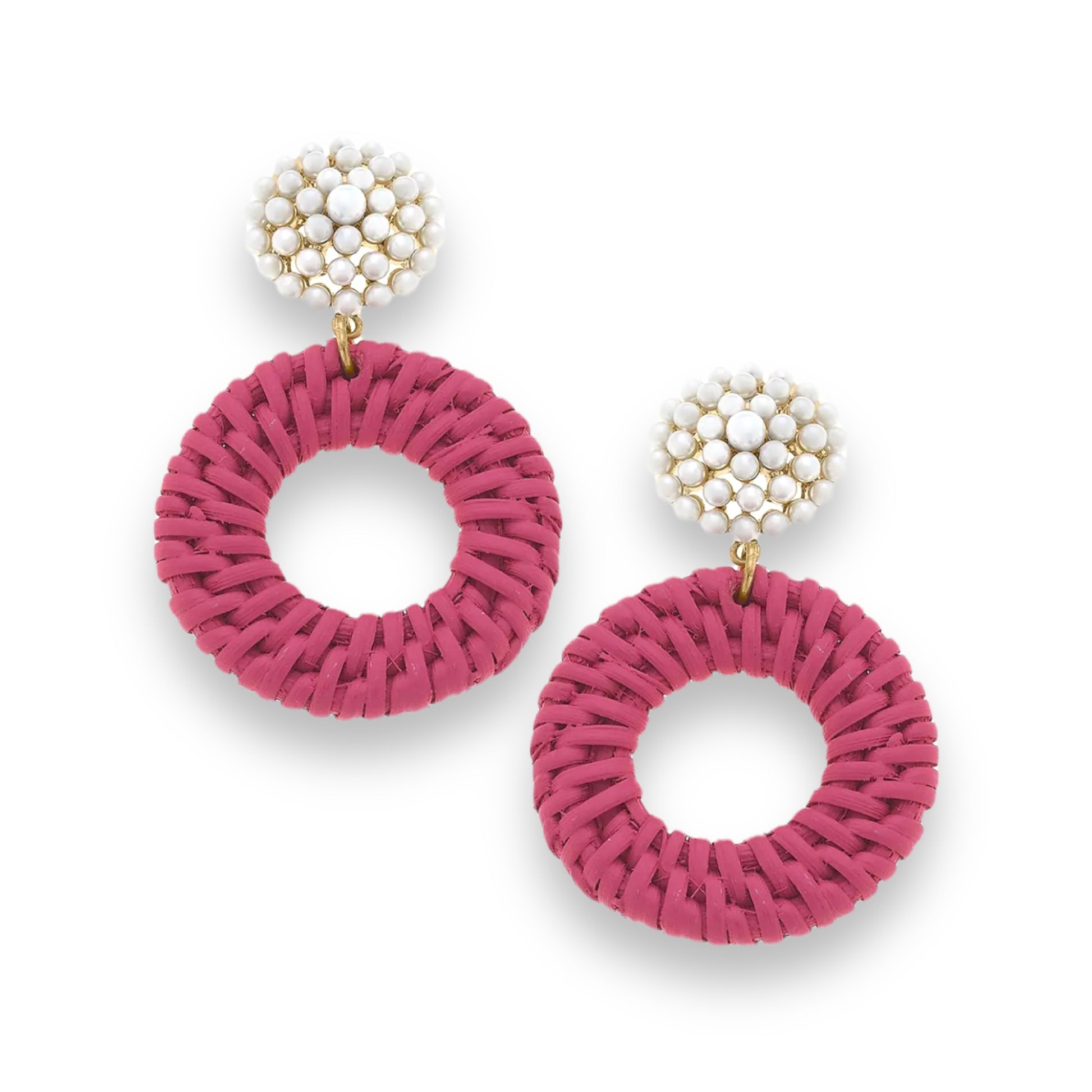Elevate your accessory game with our Elena Circle Wicker Pearl Drop Earrings! Featuring a delicate circle wicker design and vibrant pink accents, these earrings are perfect for adding a touch of elegance to any outfit. The pearl drop detail adds a classic touch, making them the perfect statement piece for any occasion.