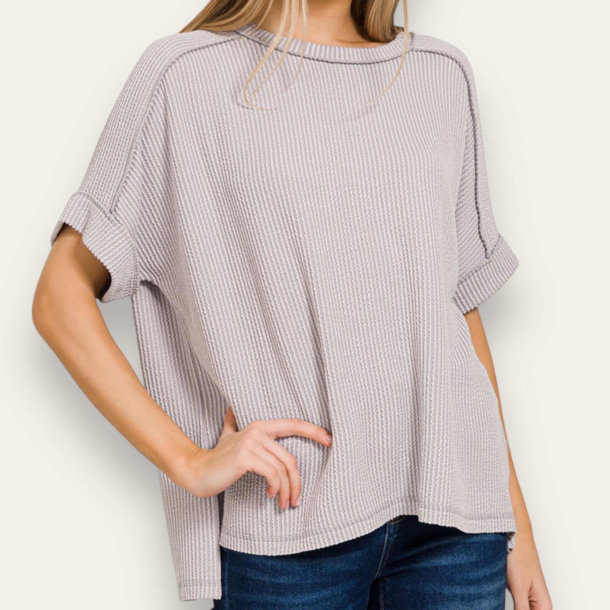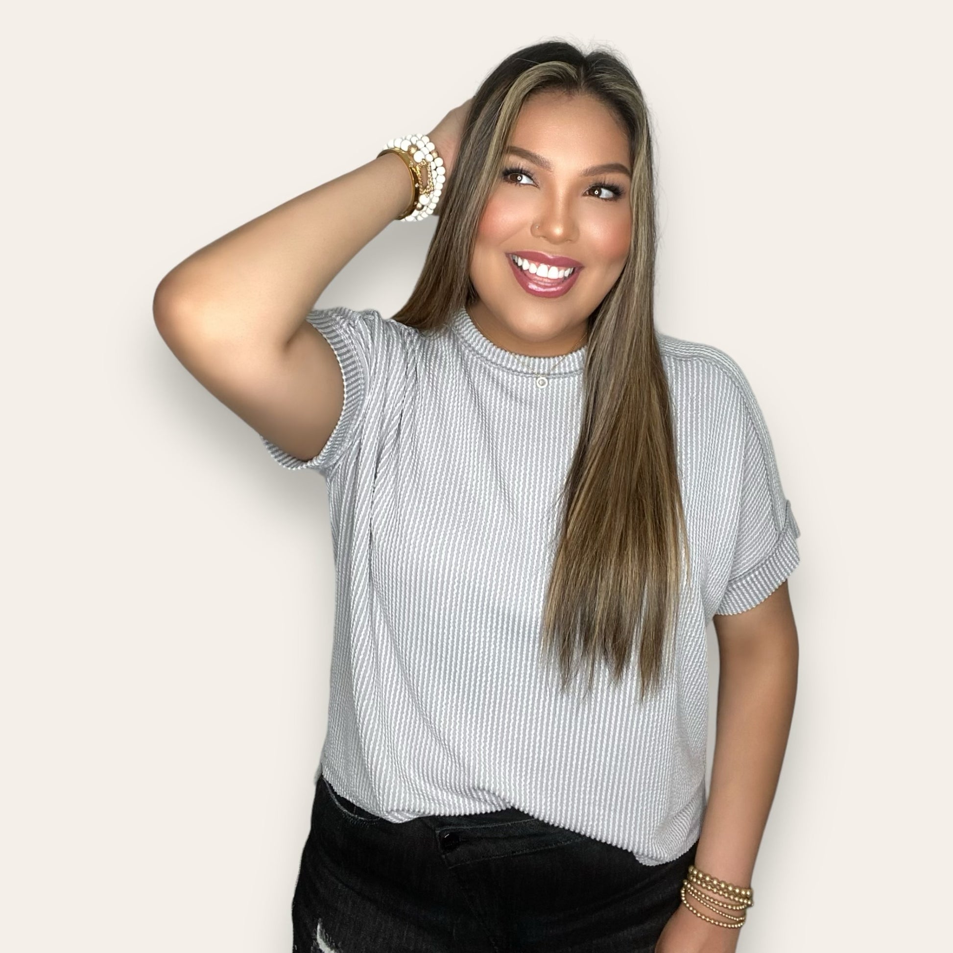 Introducing The Kali Textured Top in light gray - a versatile and stylish addition to your wardrobe! This top features a unique textured fabric that adds visual interest and a flattering fit. Perfect for any occasion, dress it up or down for effortless style.