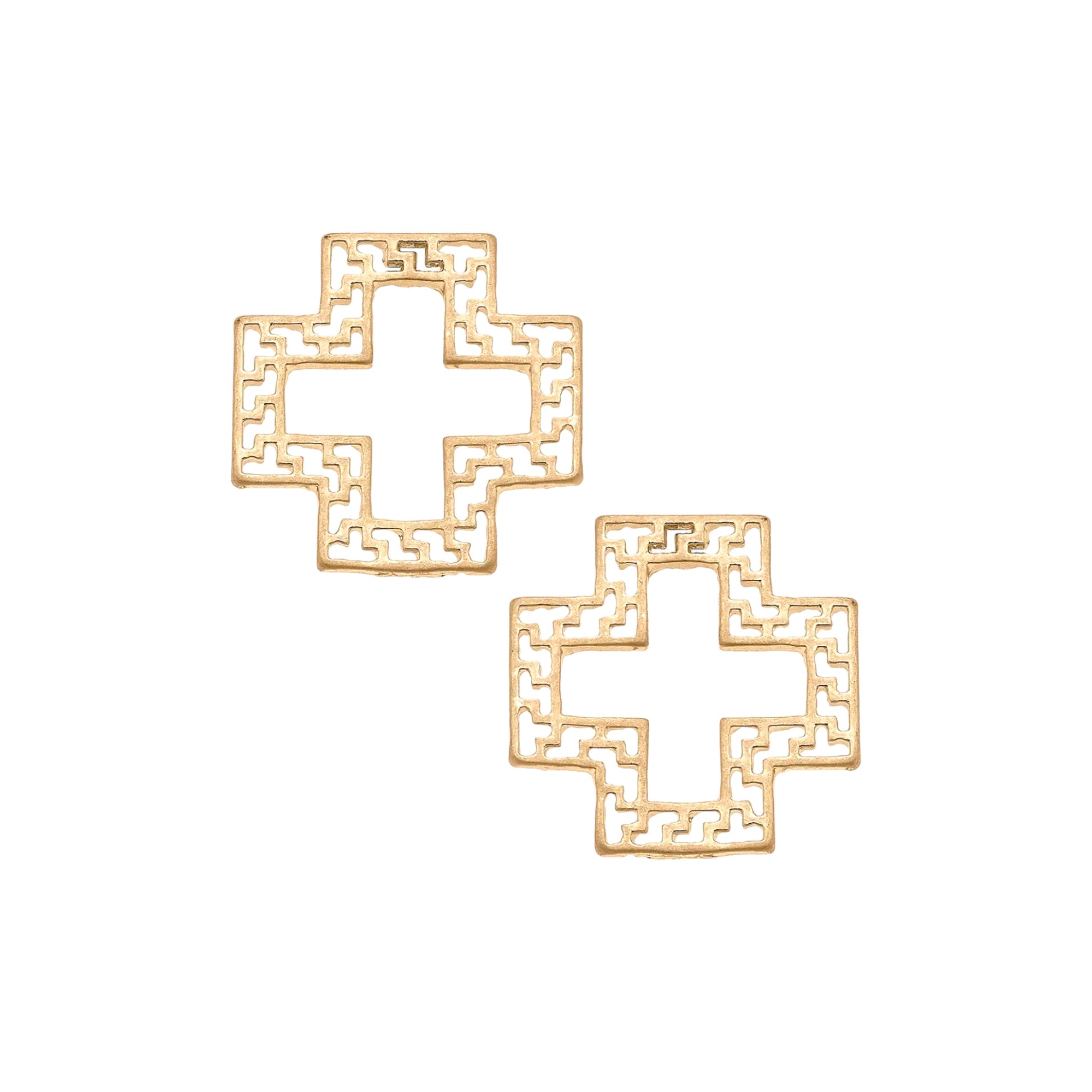 The Kasey Greek Keys Cross Stud Earring