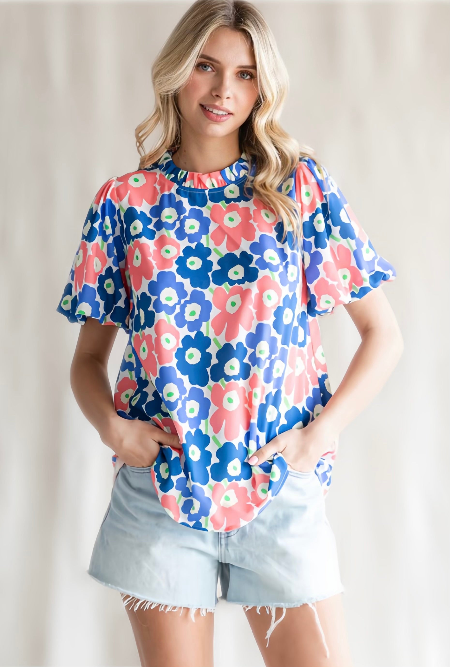 Introducing the Lauren Top, the perfect addition to your summer wardrobe! With its stunning floral print and stylish bubble sleeves, this top will elevate any outfit and have you feeling confident and chic. Embrace the warm weather in style and make a statement wherever you go!