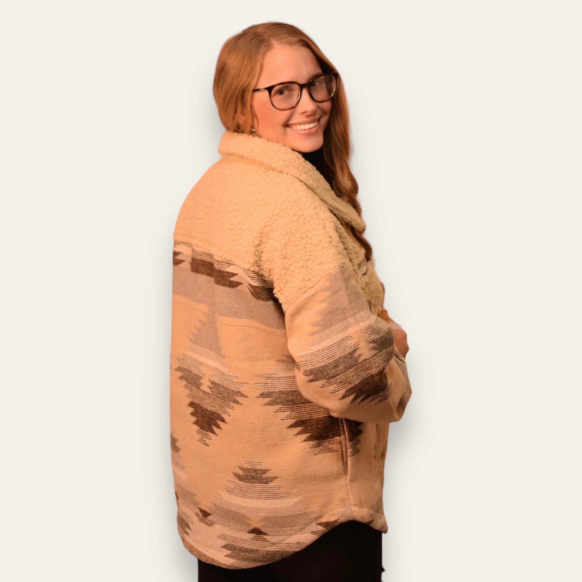 The Mocha Mix Aztec Oversize Sherpa Shacket