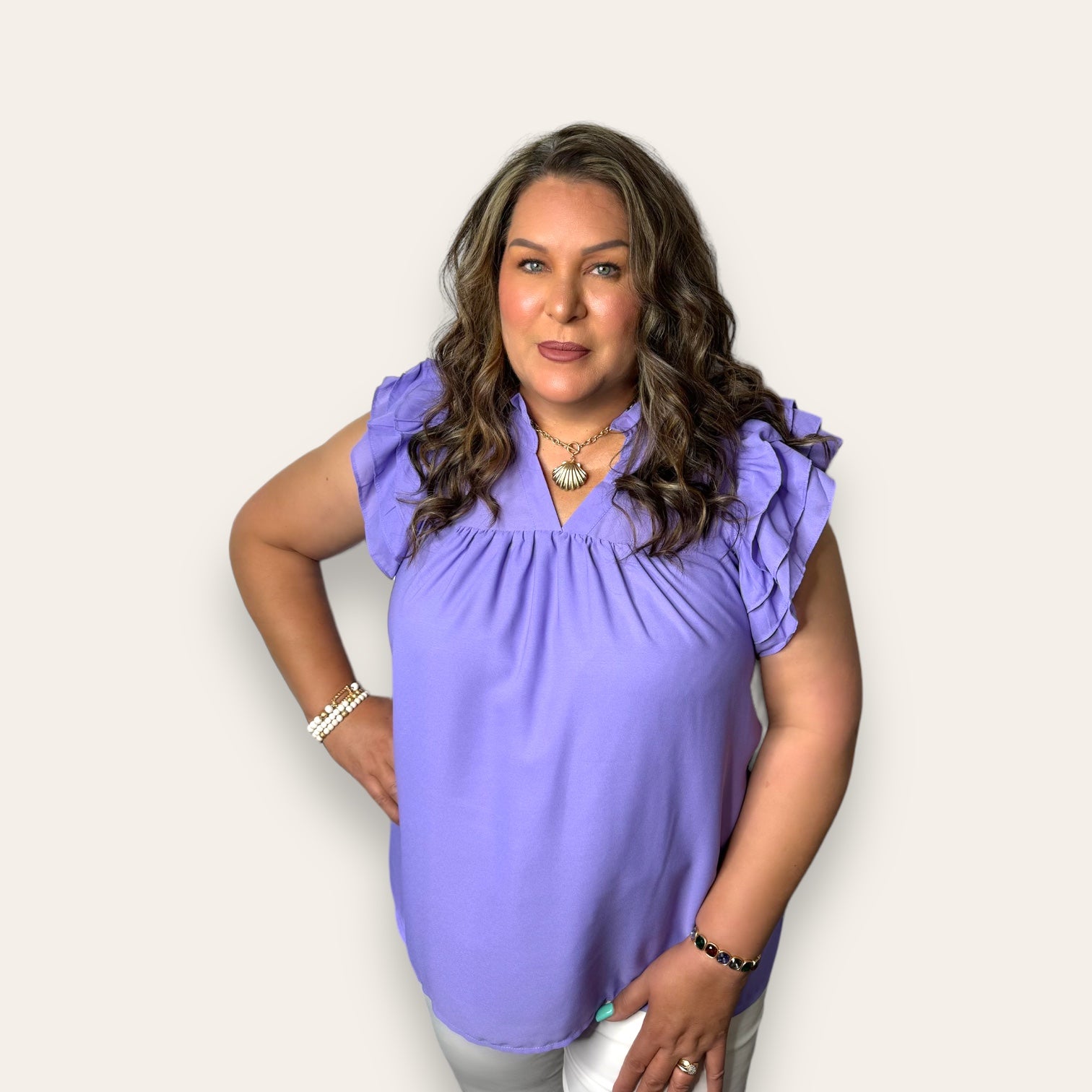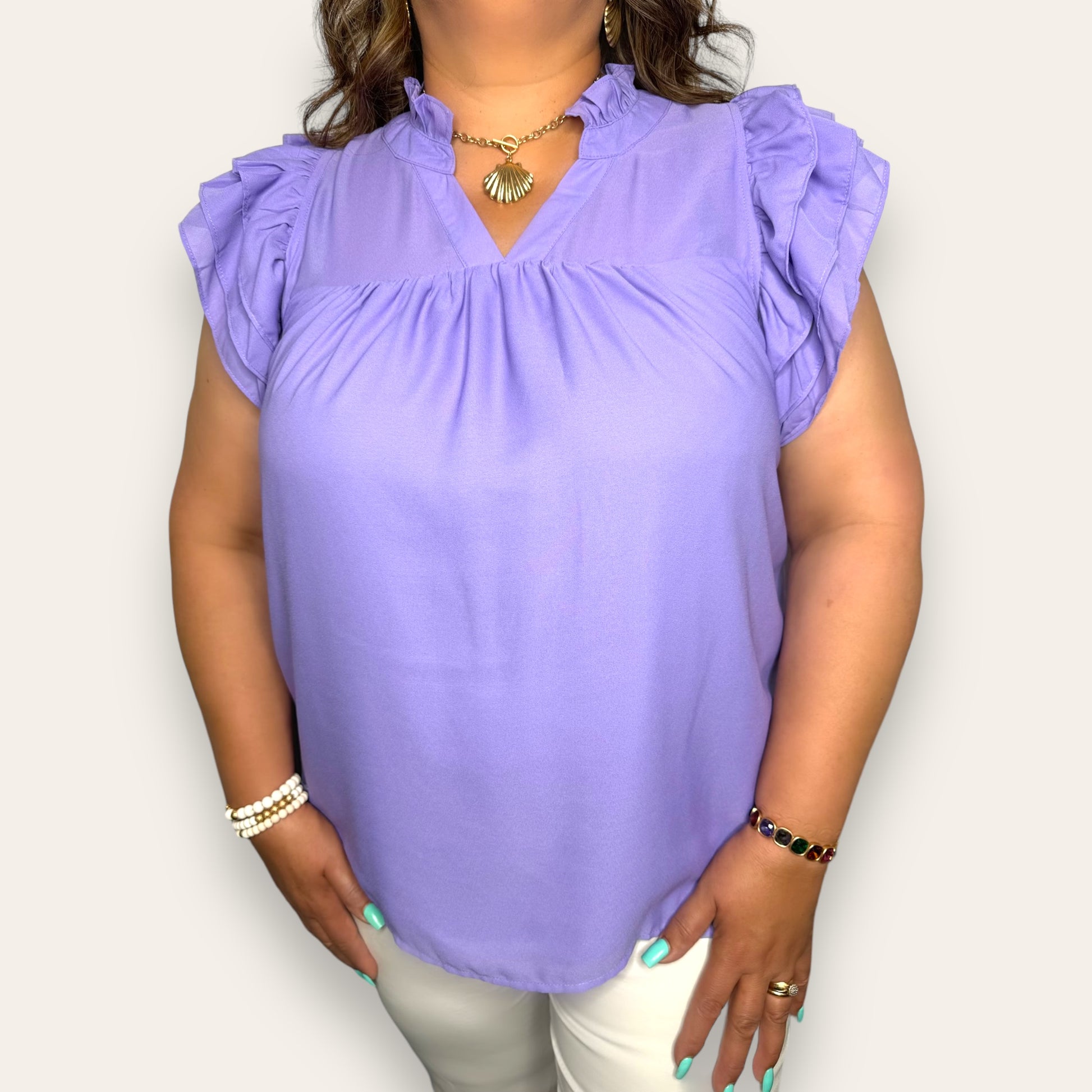 Looking for a chic and stylish addition to your wardrobe? Look no further than The Royal Ruffle Top in Lavender! This top features elegant ruffle details and a mesmerizing lavender color that will make a statement wherever you go. Enhance your style and feel confident in this must-have piece!