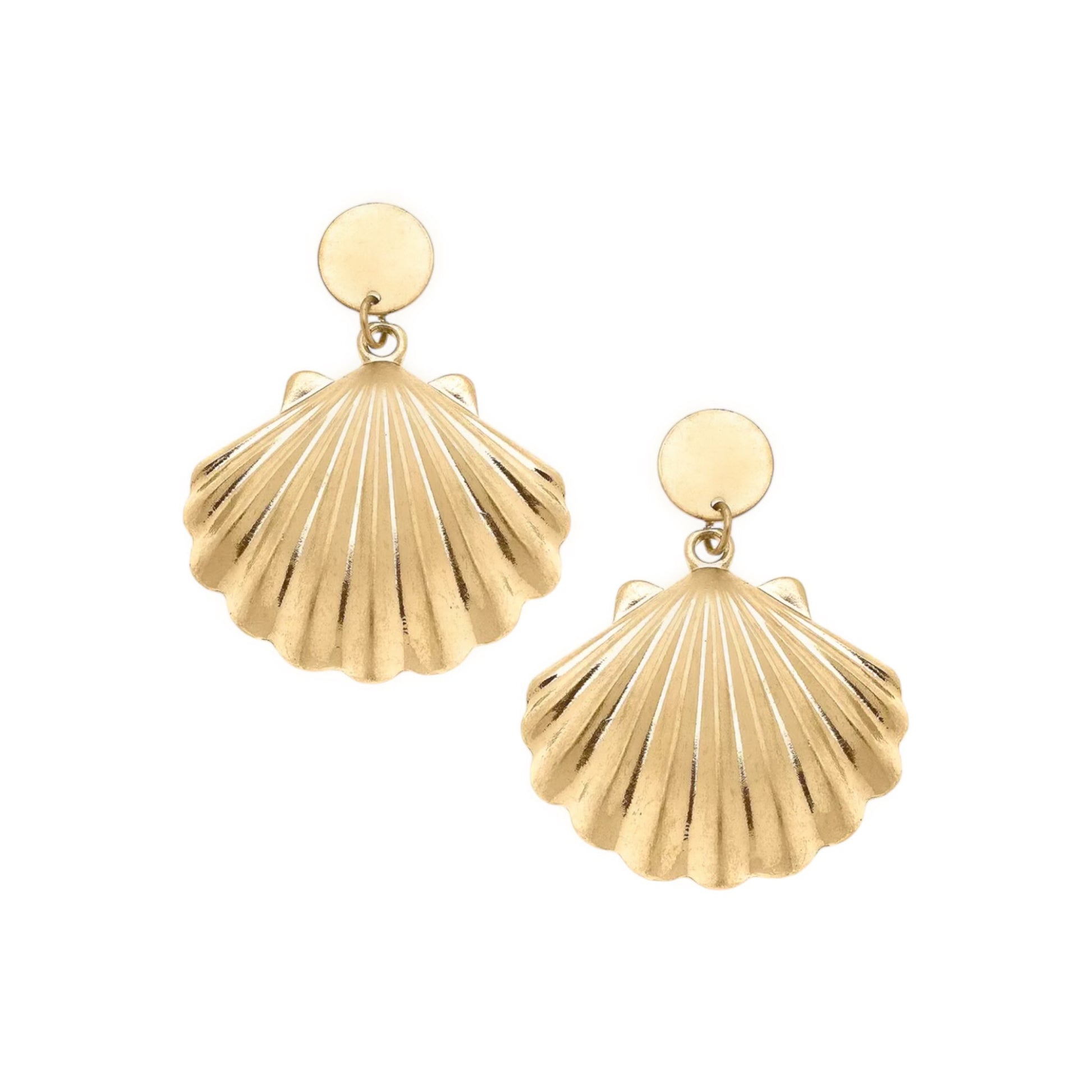 Add a touch of seaside elegance to your summer look with The Scallop Shell Statement Earring. Crafted in worn gold, this earring is perfect for a beach vacation or adding a touch of coastal charm to any outfit. Embrace the ocean vibes and elevate your style with this stunning statement piece.