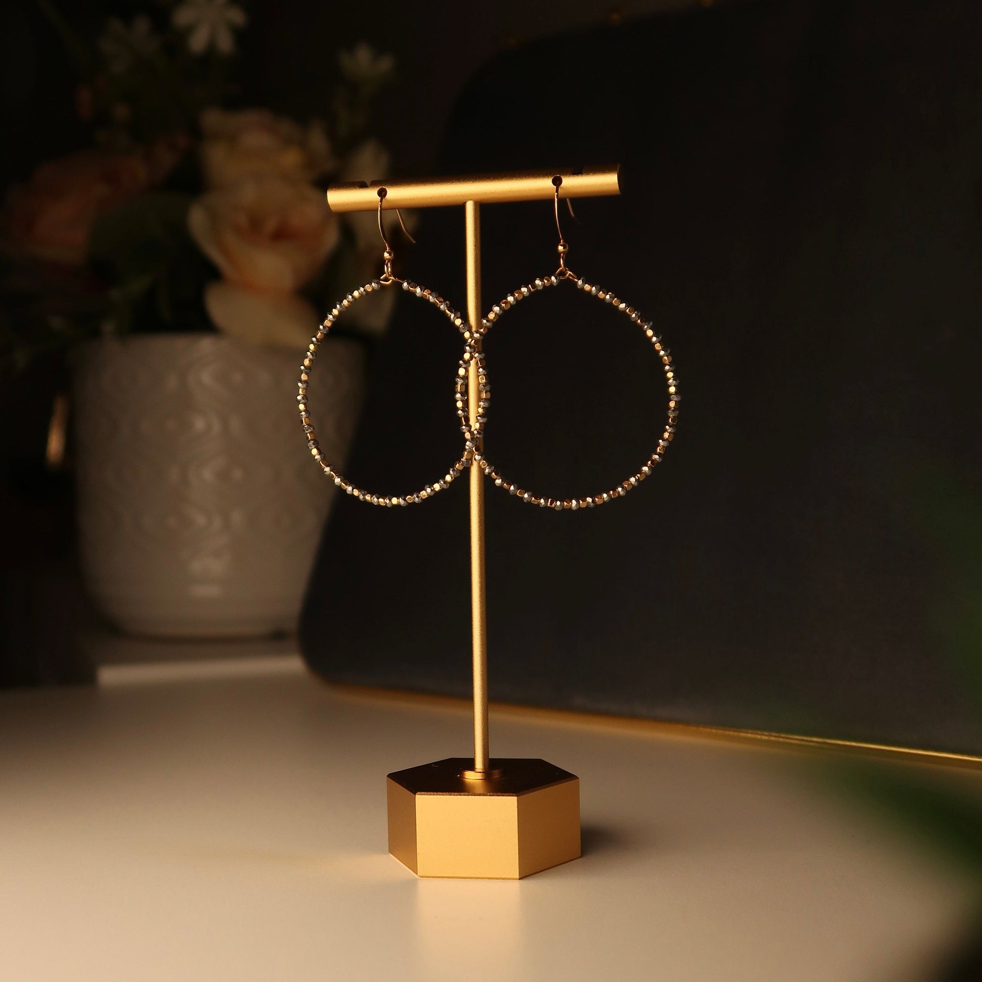 Express your unique style with this beautiful Sprinkled With Love Beaded Hoop in grey and gold. This stunning hoop is adorned with multi-colored beads that sparkle in the light. Perfect for any special occasion!