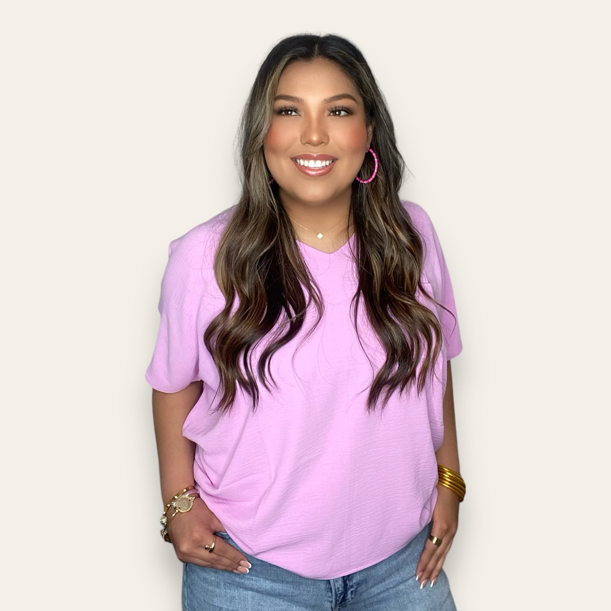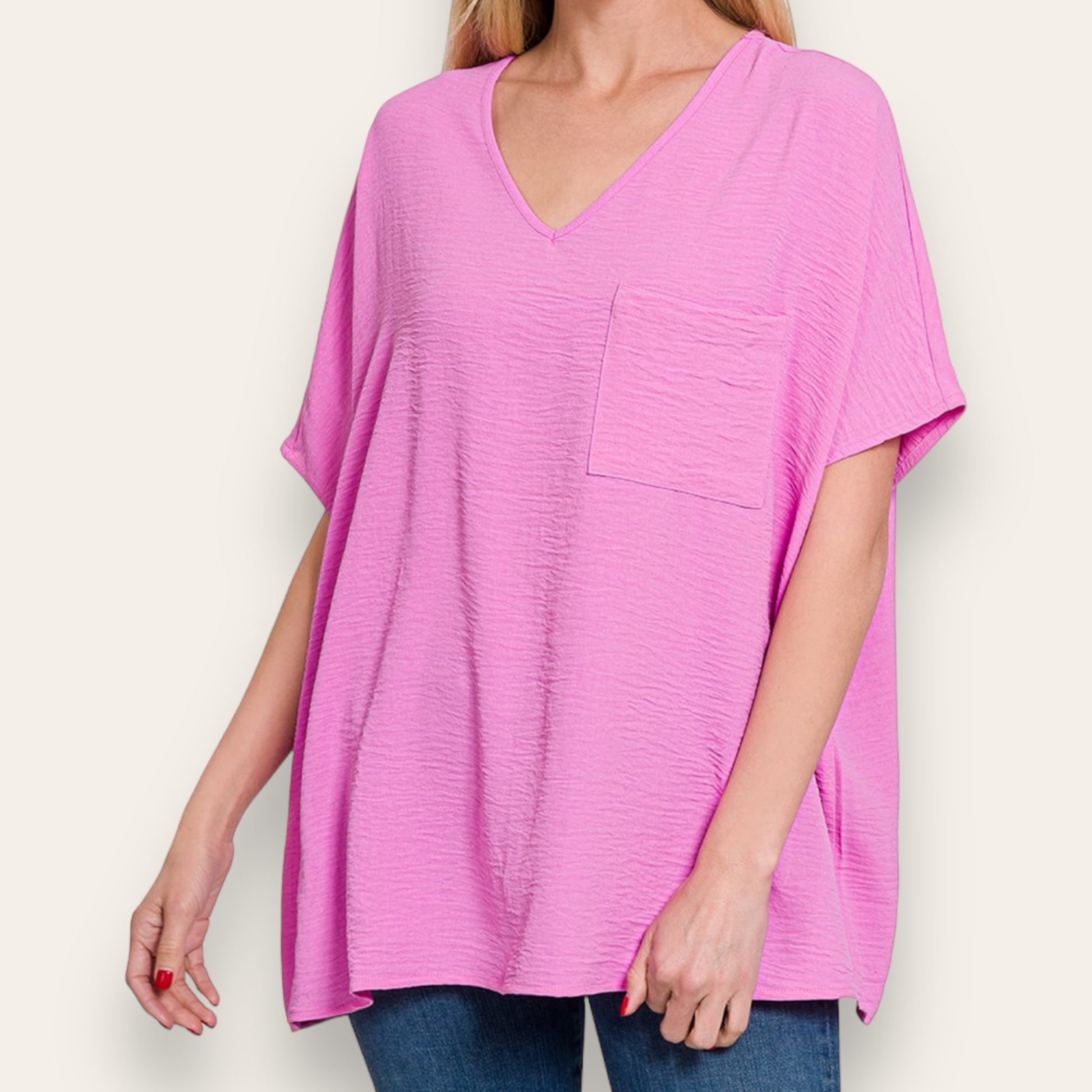 The Zenana Oversized V Neck Pocket Top is perfect for a relaxed yet stylish look. The Mauve color adds a feminine touch while the oversized fit and v-neckline provide comfort and versatility. The added pocket detail adds functionality to this must-have wardrobe staple. You'll love the effortless and chic vibe this top brings to your outfit!